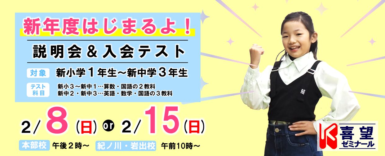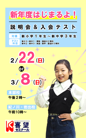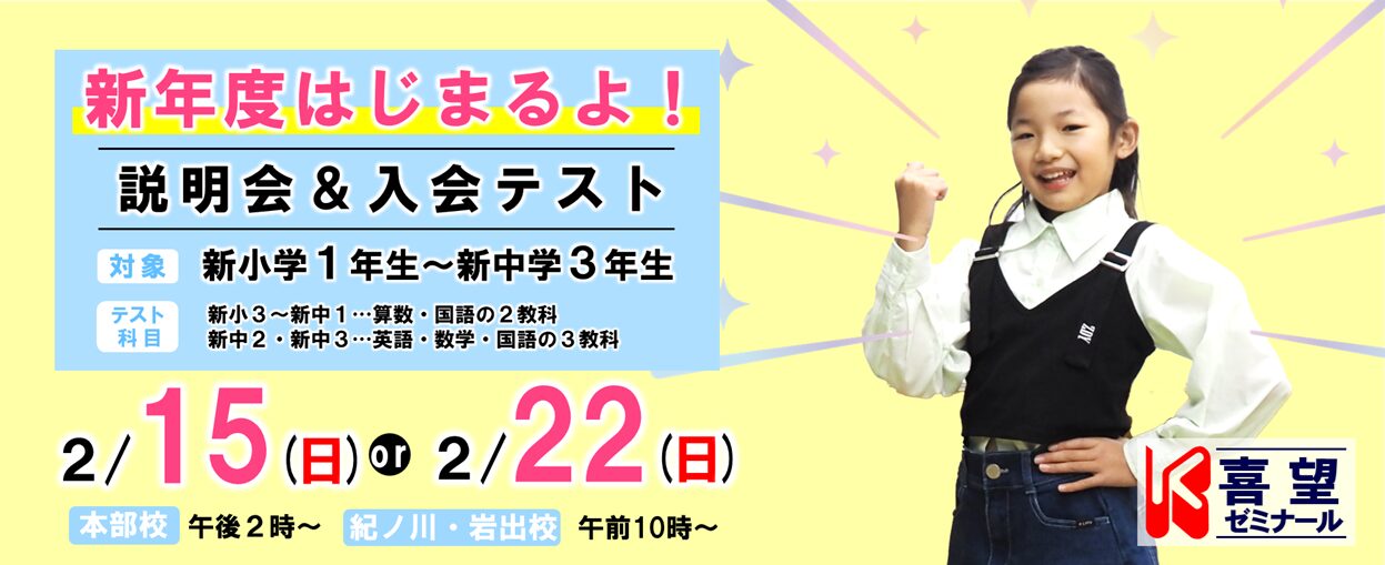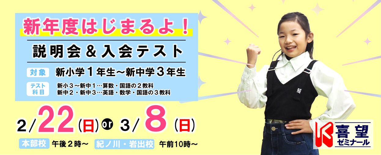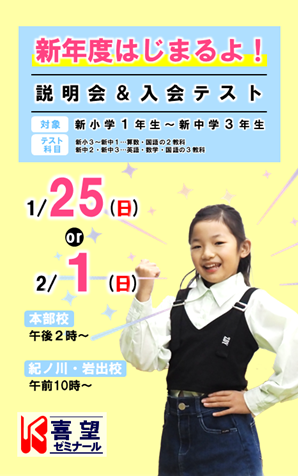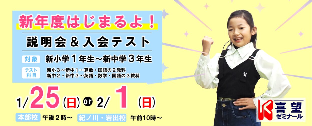 喜望ゼミナールは、幼児教育、日々の学習、学校のサポート、補習授業、そして和歌山の中学、高校、大学受験と様々な目的・目標に合わせたコースを用意しています。