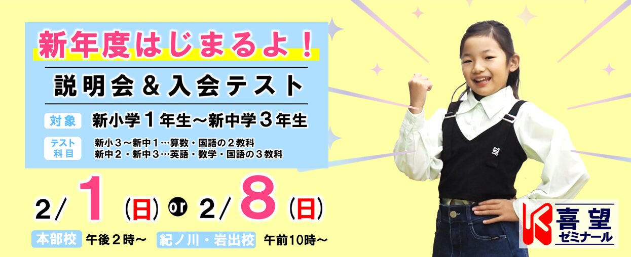 喜望ゼミナールは、幼児教育、日々の学習、学校のサポート、補習授業、そして和歌山の中学、高校、大学受験と様々な目的・目標に合わせたコースを用意しています。